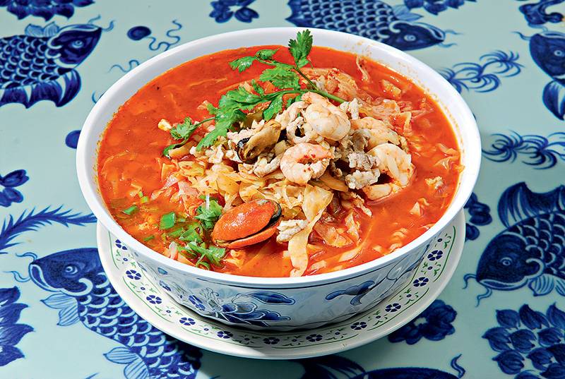 A gastronomia chinesa clássica com opções vegetarianas asiáticas em ambiente informal de temática mandarim.