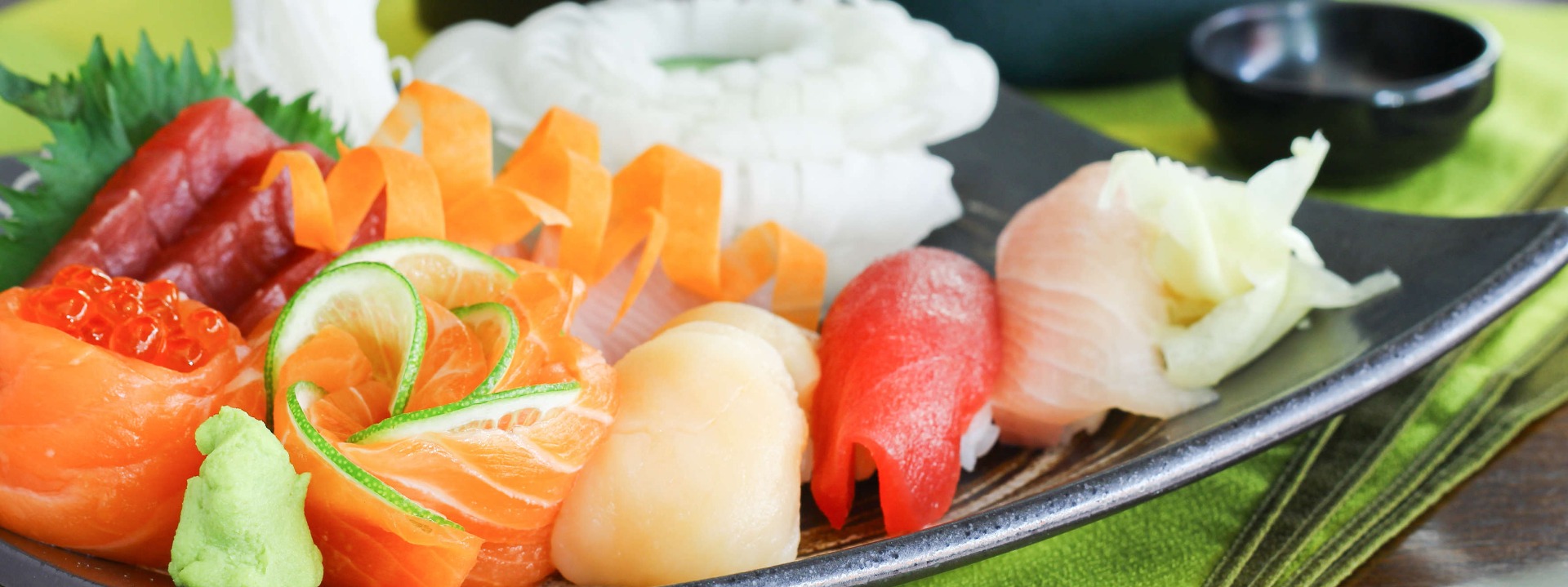O restaurante conta com uma grande variedade de comida japonesa, inclusive sobremesas.